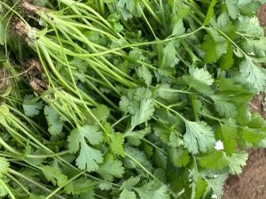 畑に近づいた瞬間からふわっとパクチーの香りが広がって、